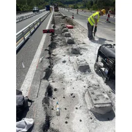 Sredstvo smo prvič uporabili pri zahtevnem infrastrukturnem projektu, kjer je bilo potrebno izvesti rušenje dela mostne konstrukcije. Dela so potekala konec aprila, pri čemer zaradi občutljive statike ni bilo mogoče uporabiti niti bagra niti eksplozivnih sredstev.